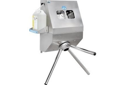After hand disinfection is provided, the turnstile system with hand disinfectant allows to pass to the production area.