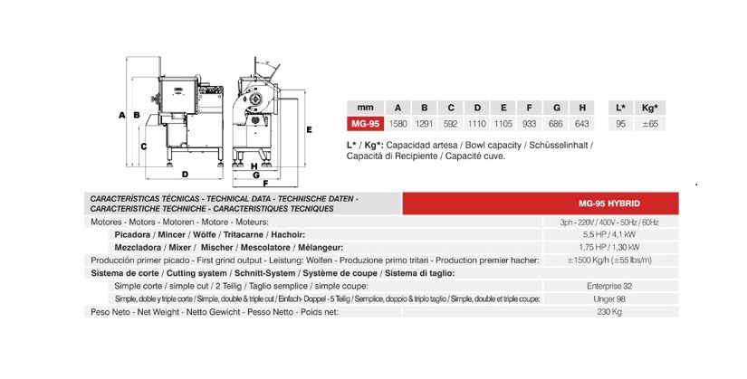 - Reliable and strong gear drive and powerful motors with high overload capacity suitable for mincing all types of meat.
