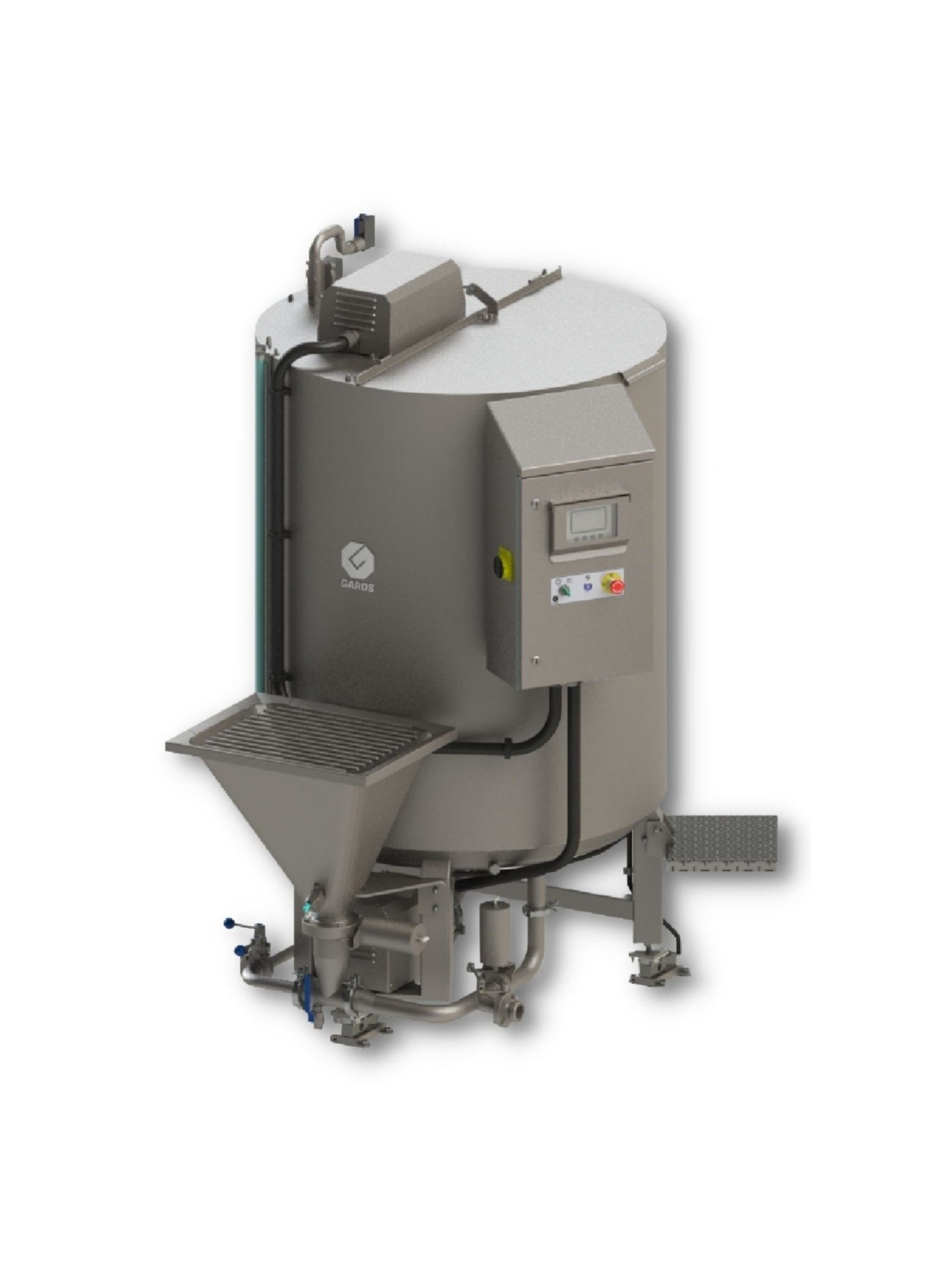 The GAROS GLB is one of the only brine mixing machines designed to handle a large variety of ingredients. Brine and marinade recipes, recently, have been modified to include a higher level and more difficult to dissolve, ingredients/dry substances. This has increased preparation requirements in relation to handling, mixing, and dissolving the ingredients. The GLB is available in sizes 500, 1000, 1500 to 2000 litres. The tank is made of 316 acid resistant stainless-steel.